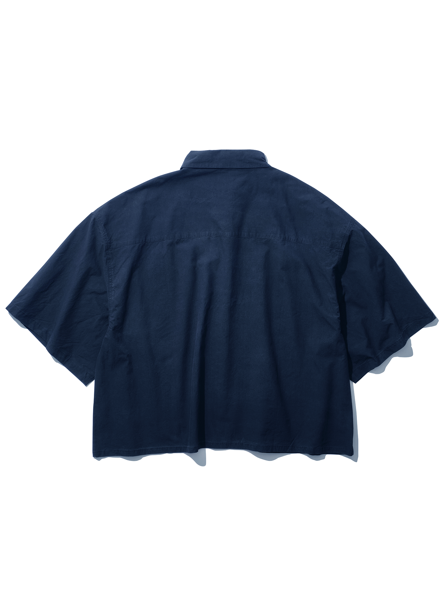 着丈を短くしたオーバーサイズの半袖シャツ。着たときの袖バランスは、ワイドすぎて七~八分丈になるシルエット。WILLY CHAVARRIAらしい、ありそうでなかった特徴的なシャツ。