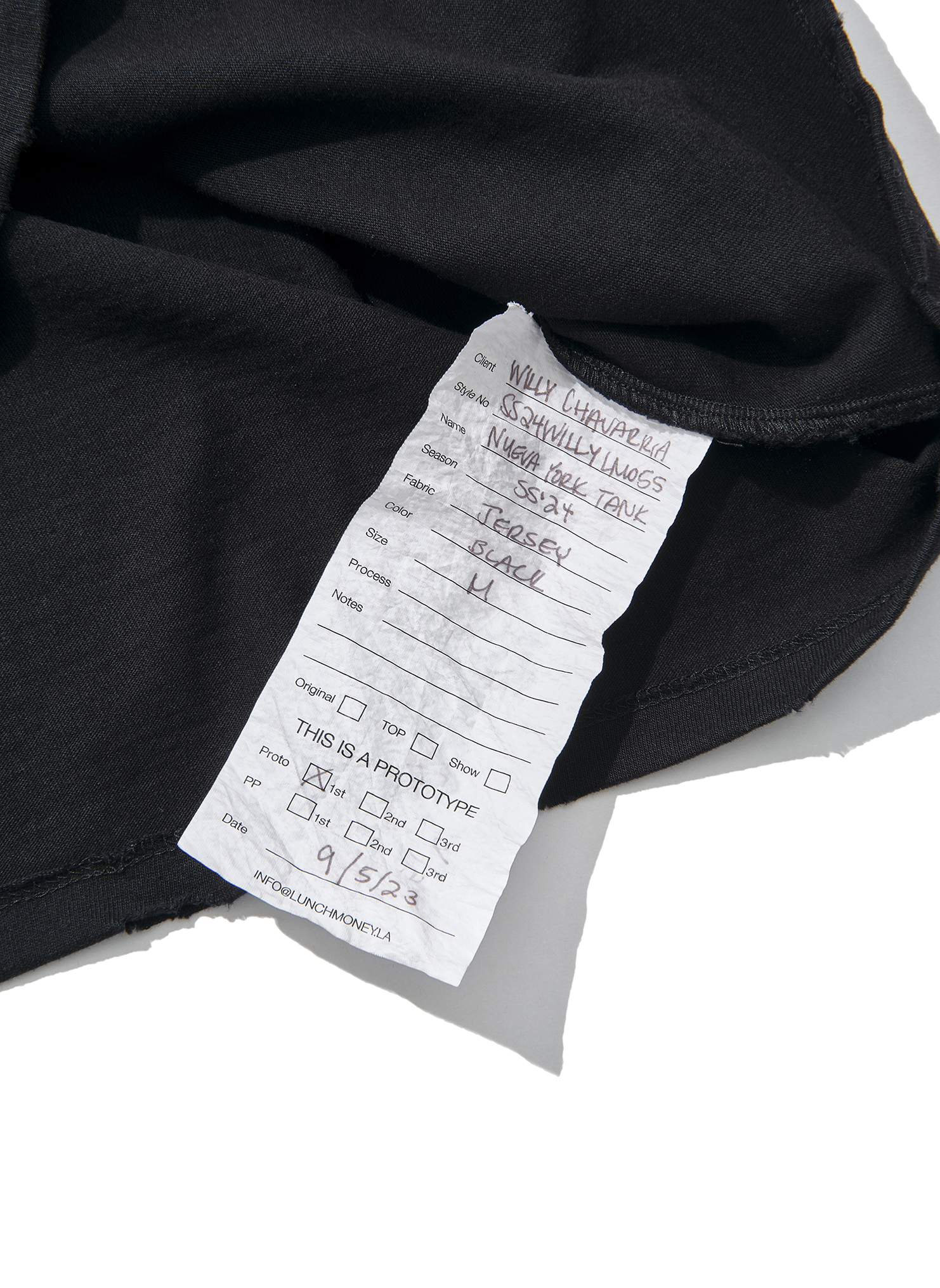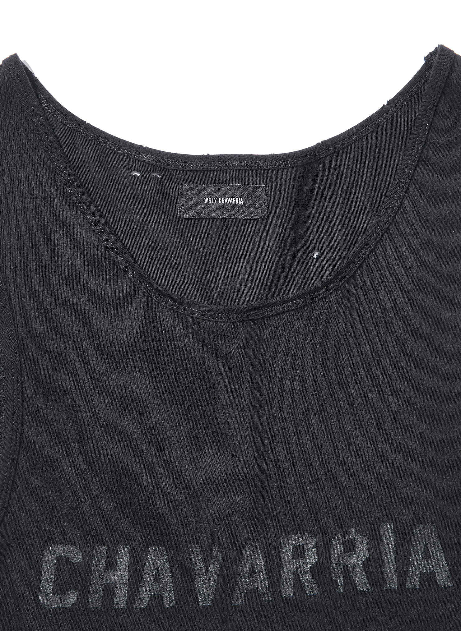 『NUEVA YORK』=NEW YORKのスペイン語表記。WILLY CHAVARRIAでは珍しい丈の長いほっそりシルエットで、ダメージ加工が施されたタンクトップ。