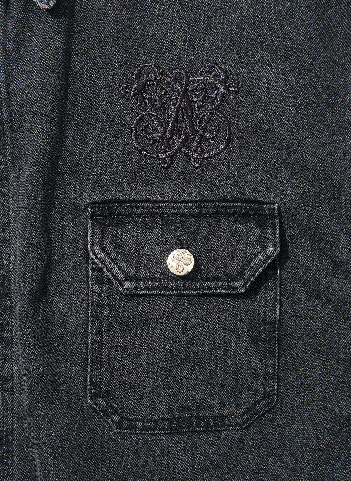 これぞまさしくショーピース。ショー以降、商品化されなかった幻のアイテム。ウォッシュド加工したデニムを仕様し、胸元には2匹のヘビをモチーフにしたWILLY CHAVARRIAロゴの刺繍と金のクレストボタン、ポケットの位置も通常より若干下めに配置。こんなシャツジャケット、マニアにはたまらないレアな逸品。